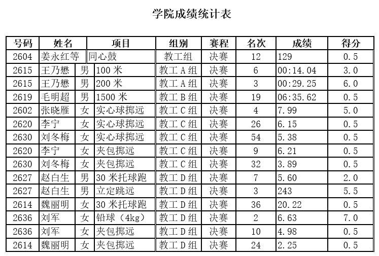 在全院教职工团结拼搏、永不言弃的努力下,外国语学院总共获得36.5分的比赛成绩,在全校参赛单位中积分排名第27。
