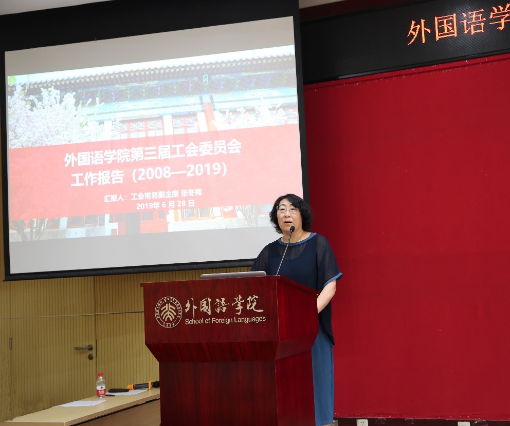 2019年6月28日,外国语学院工会会员代表大会在新楼501会议室隆重举行。会议选举产生了外国语学院第四届工会委员会委员。北京大学工会常务副主席张宝岭、副主席张小萌、女工青年福利部部长张宇出席会议,学院工会会员代表共35人参加了大会。大会由学院党委副书记宋扬主持。