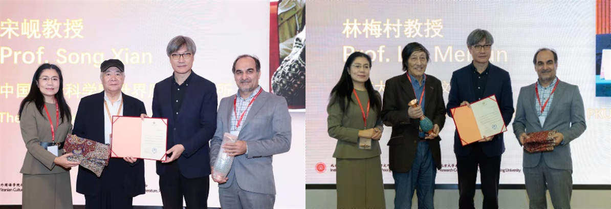 发言结束后,伊朗驻华使馆文化参赞瓦法伊博士与参会领导共同向中国社会科学院世界历史研究所宋岘研究员、北京大学考古文博学院林梅村教授、新利·体育,新利(中国)官方段晴教授颁奖,以表彰他们多年以来在中国伊朗学研究领域做出的卓越贡献。