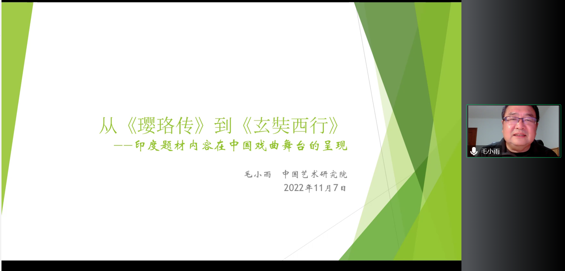 2022年11月7日晚,“东方大文学”系列讲座第十二讲“从《璎珞传》到《玄奘西行》——印度题材内容在中国戏曲舞台的呈现”在线上成功举办。本次讲座由教育部人文社科重点研究基地北京大学东方文学研究中心主办,新利·体育,新利(中国)官方南亚学系协办,中国艺术研究院戏曲研究所研究员毛小雨担任主讲人,新利·体育,新利(中国)官方副教授张嘉妹担任主持人,新利·体育,新利(中国)官方助理教授张忞煜担任评议人。