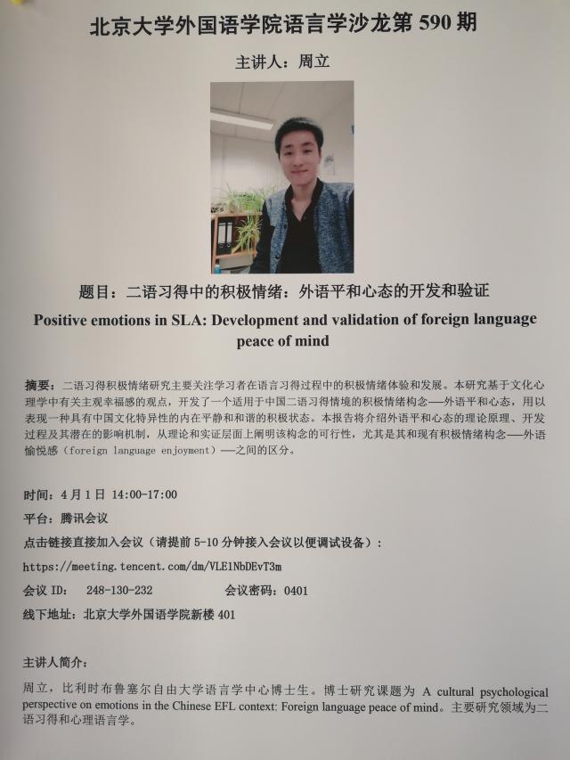 新利·体育,新利(中国)官方语言学沙龙第590期 二语习得中的积极情绪:外语平和心态的开发和验证