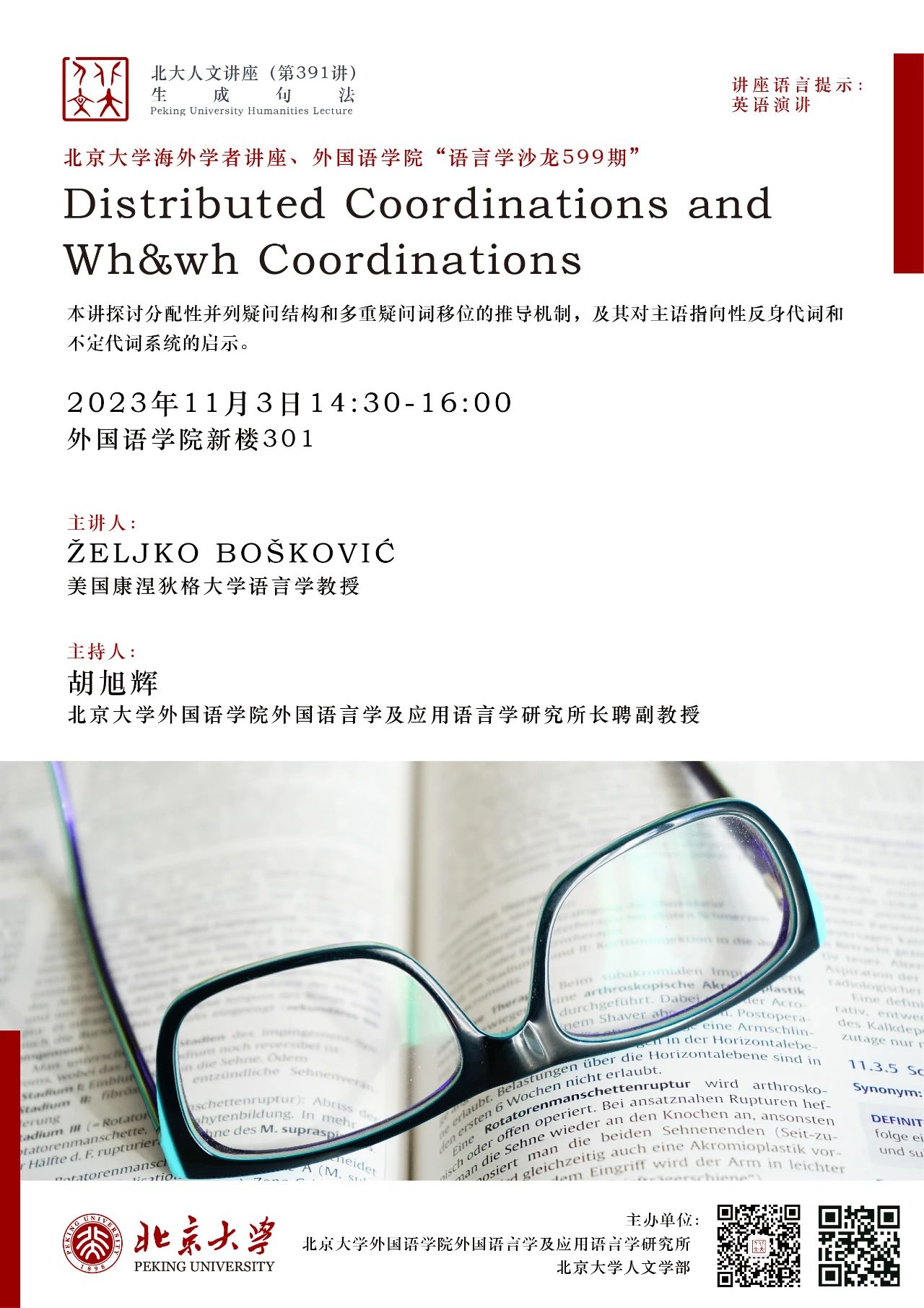 北京大学海外学者讲座、语言学沙龙599期:Distributed Coordinations and Wh&wh Coordinations