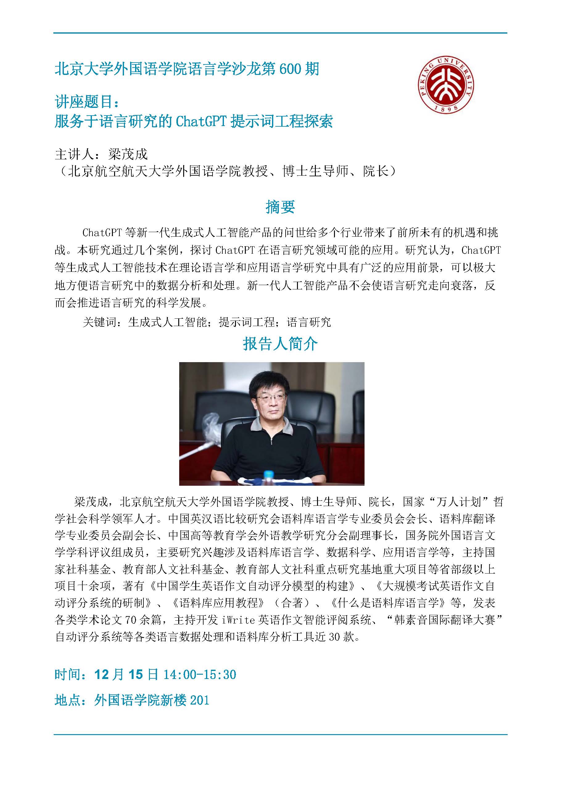 新利·体育,新利(中国)官方语言学沙龙第600期:服务于语言研究的ChatGPT提示词工程探索