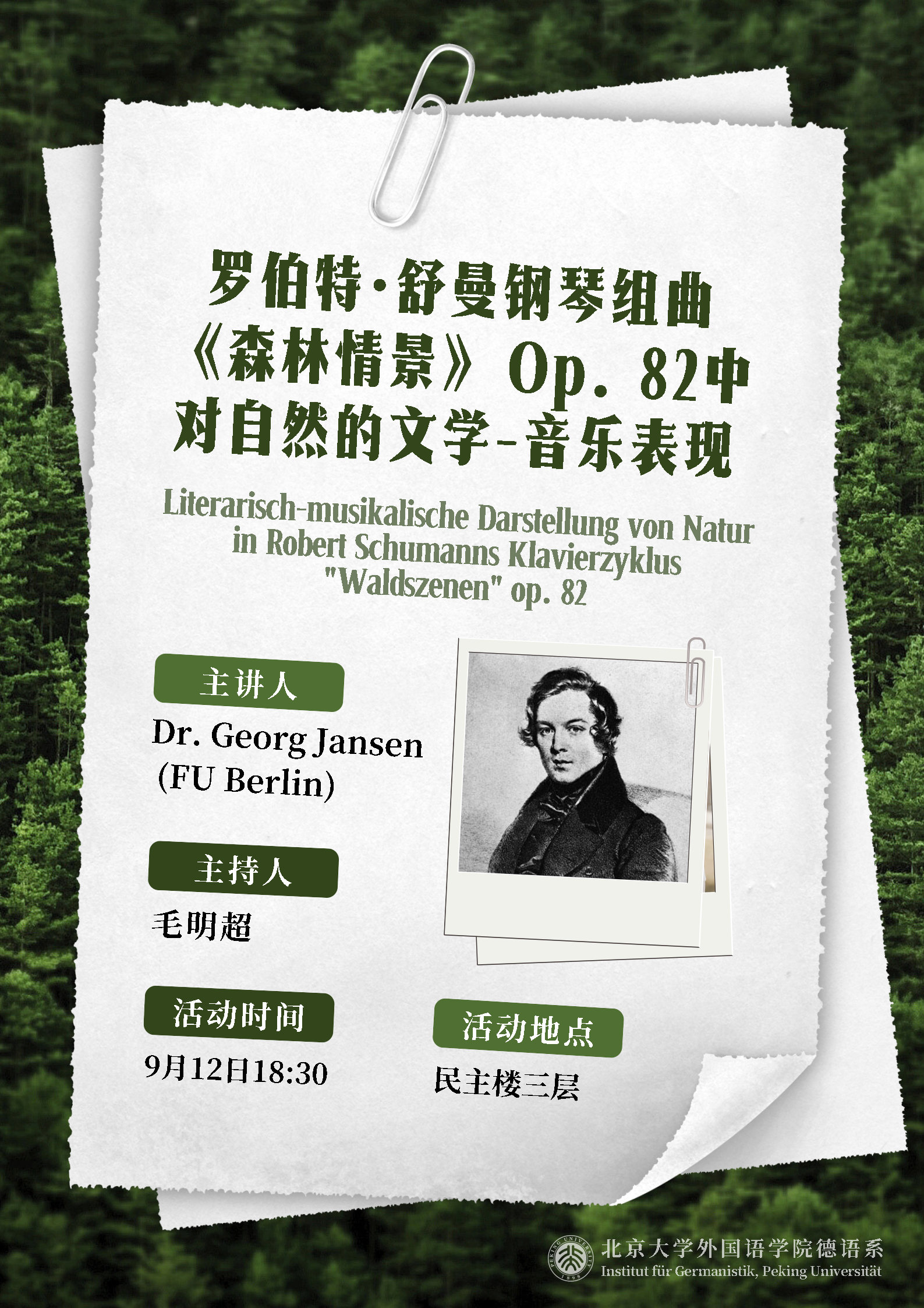 罗伯特·舒曼钢琴组曲《森林情景》Op.82中对自然的文学-音乐表现