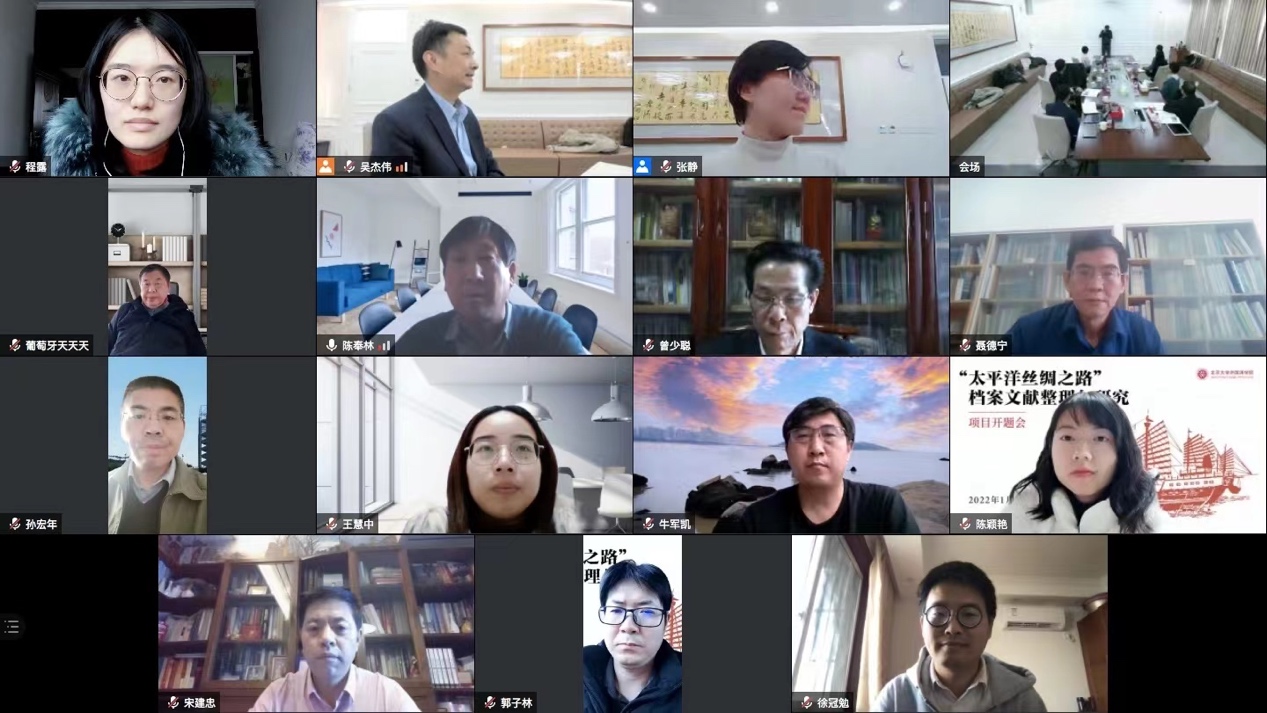 2022年1月15日,由新利·体育,新利(中国)官方吴杰伟教授主持的国家社会科学基金中国历史研究院重大历史问题研究专项2021年度重大招标项目“‘太平洋丝绸之路’档案文献整理与研究”开题会在北京大学举行。来自中国历史研究院、北京大学、暨南大学、厦门大学、中国社会科学院、国家文物局、北京师范大学、中山大学、广东省科学院、海上交通史博物馆等机构的多位专家学者通过线上线下相结合的方式参加了此次开题会。