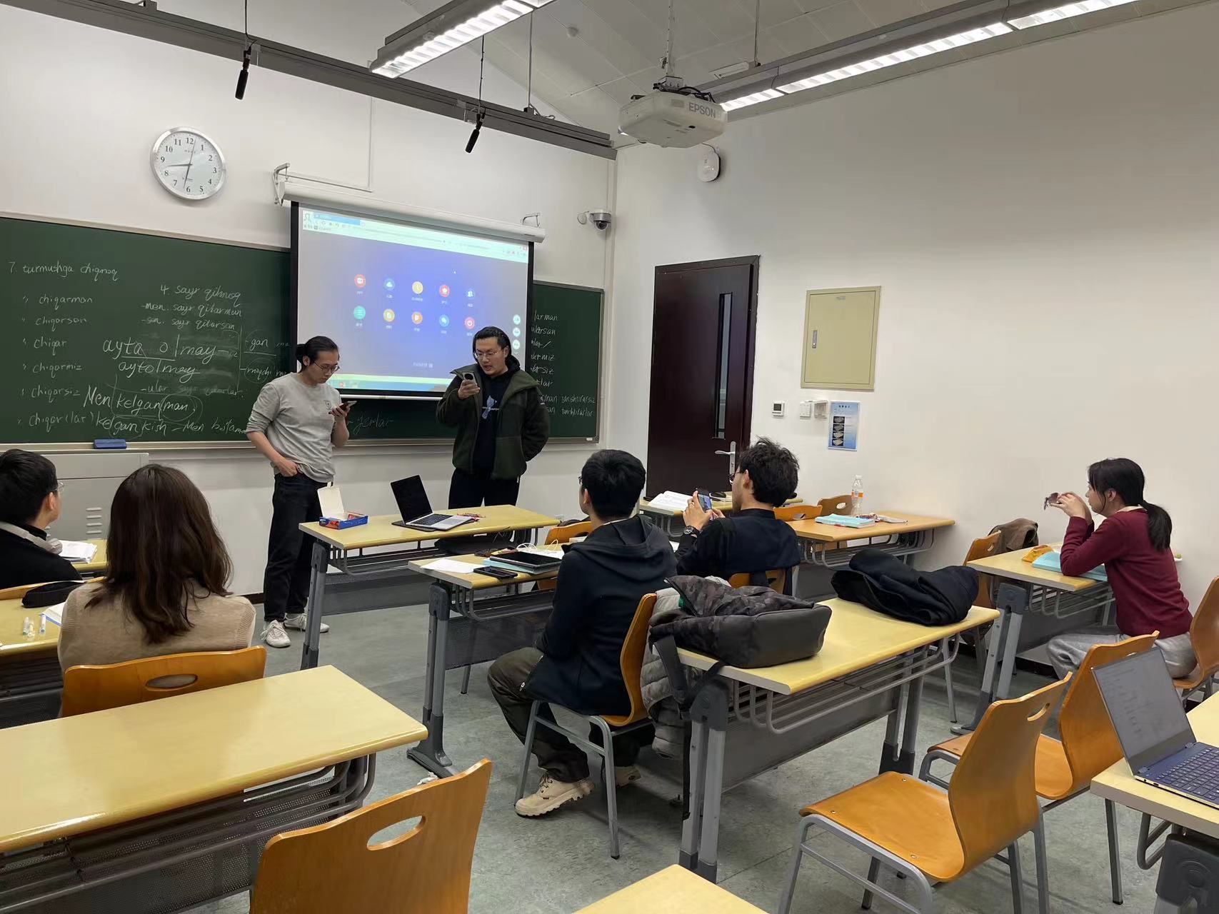 任课教师古丽巴努木老师有着丰富的乌兹别克语授课经验。该课程从零基础开始,从字母、单词、语法等方面全面培养学生的听力、口语、写作等多项技能,并了解语言背后的文化。本课程采取了小组讨论、课堂展示等多样的互动方式,致力于打造学习氛围轻松活泼、学习效果显著的优质语言课堂。