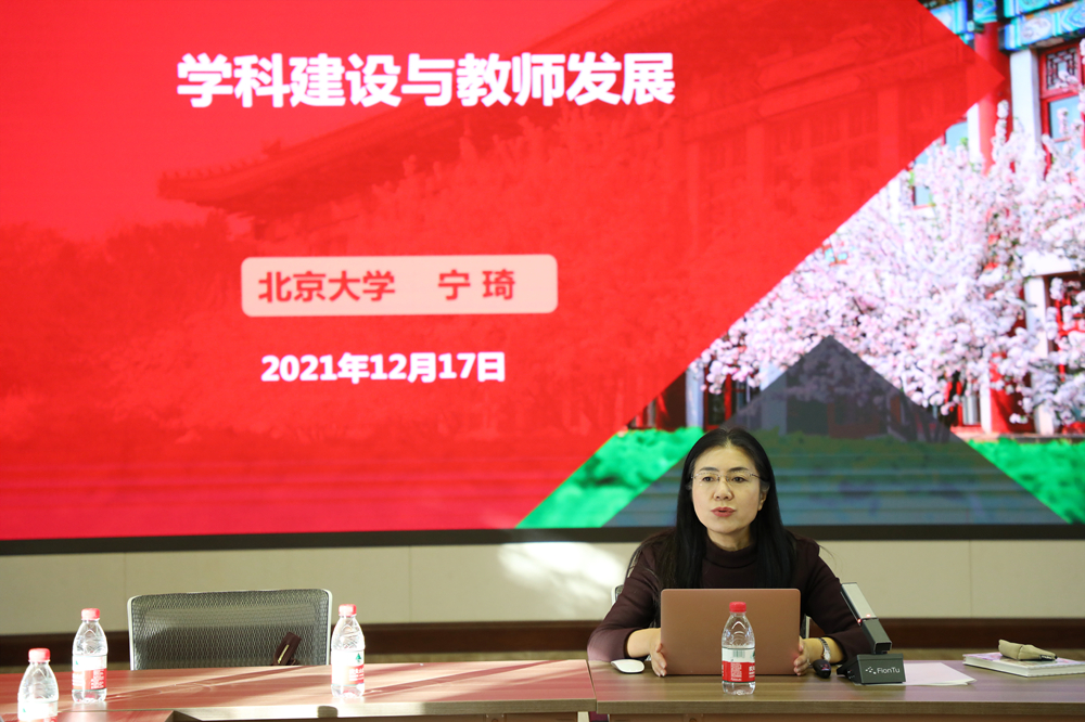 2021年12月17日下午,外国语学院举办主题为“学科建设与教师发展” 的讲座暨青年教师培训。讲座由外国语学院院长宁琦教授主讲,外国语学院副院长吴杰伟教授主持,50余名青年教师参加活动。