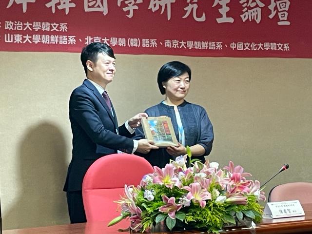 本次论坛由开幕式、四场主题发表、闭幕式等六部分组成。开幕式由台湾政治大学韩国语文学系陈冠超老师担任主持,系主任陈庆智老师致欢迎辞。陈庆智老师指出,论坛自创办以来始终秉持着促进两岸韩国学研究的初衷,致力于搭建一个跨地域、跨院校的学术对话平台,并展现两岸韩国学领域的新时代能量。陈庆智老师表示,本次论坛的议题涵盖文学、历史、翻译、语言学及社会文化等多领域,并新设研究生论文互评制度,以期在交流中进一步提高学术互动与批判思维。致辞结束后,陈庆智老师向与会各系赠送礼物,新利·体育,新利(中国)官方副院长王丹老师亦代表北京大学朝鲜(韩国)语言文化系向台湾政治大学韩国语文学系赠送纪念品。
