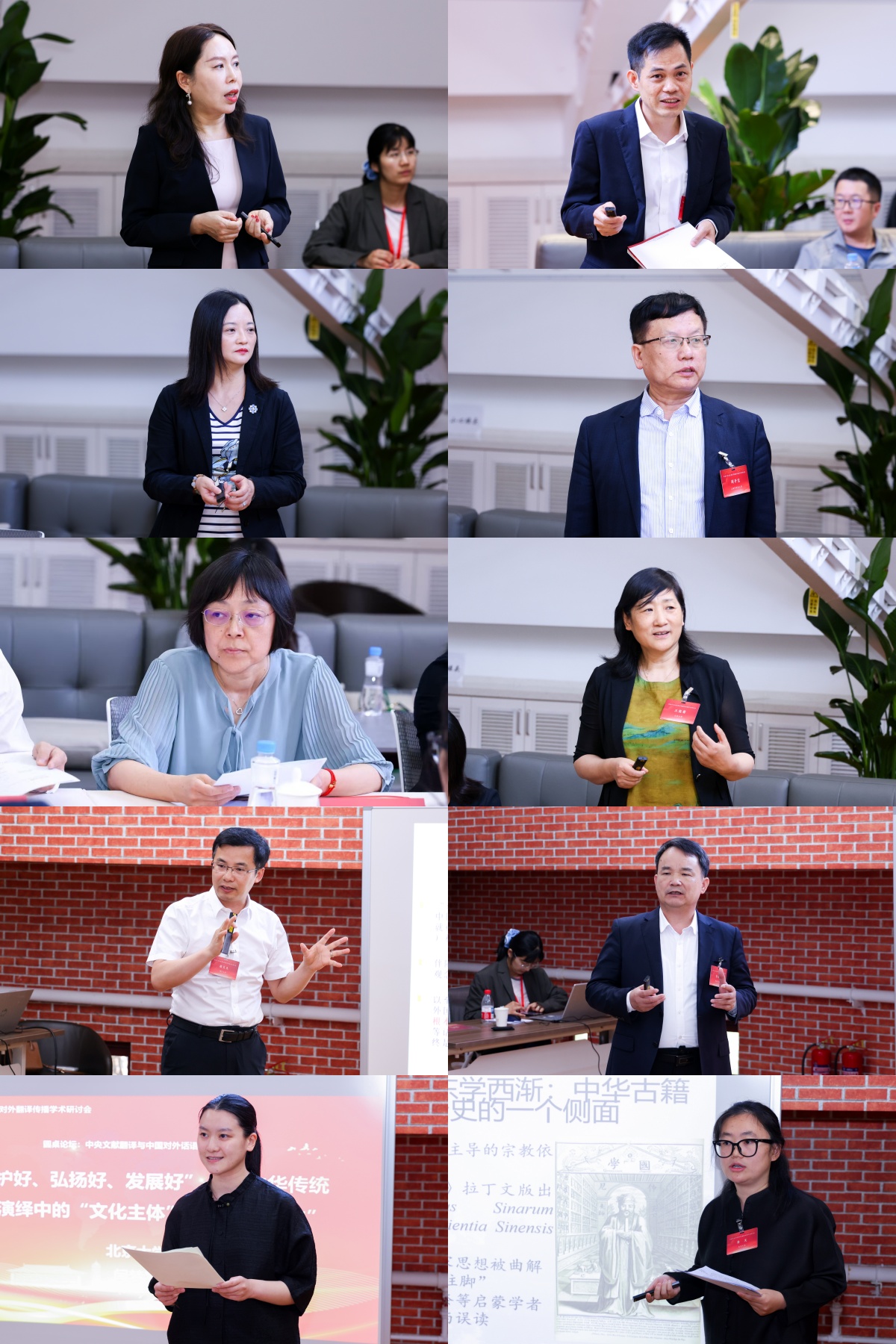 在“中央文献翻译与中国对外话语体系构建”圆桌论坛中,同济大学吴赟教授倡导运用实证方法研究翻译接受效果。广东外语外贸大学刘志强教授结合翻译实践分享传播效能提升经验。南京大学刘云虹教授强调“以我为主、融通中外”的翻译原则。上海外国语大学胡开宝教授通过语料库分析“中国梦”的国际传播。中央党史和文献研究院第六研究部二级巡视员蒋明炜提出“文化自信共同体”的理论视角。山东大学王俊菊教授探究了“文化缓冲-语境适配”的实践路径。浙江大学屈文生教授分析了中国法治形象的话语构建。闽南师范大学张龙海教授呼吁加强国际传播人才培养。北京大学闫梦梦助理教授、章文长聘副教授分别探讨了文化自信与翻译策略对外宣效果的促进作用。