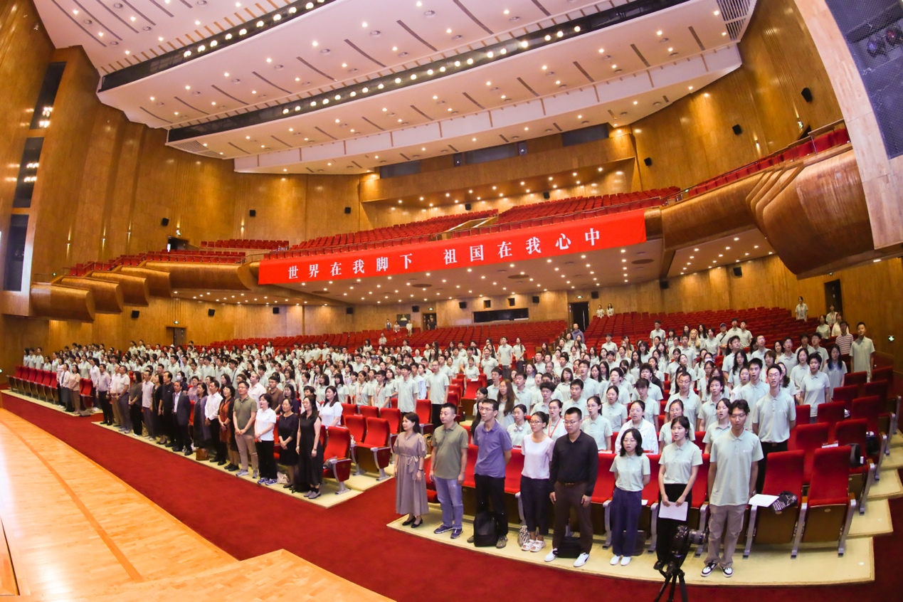 作为开学典礼的特别环节,本科各班新生展示了别具特色的班级口号。“心系未名,逐梦天方”“E quindi uscimmo a riveder le stelle(于是我们走出黑暗,重见群星)”“声越莱茵,心怀赤县,问道洪堡,德润燕园”……观众厅里,整齐划一的口号此起彼伏,雷动的掌声与激动的欢呼交织,彰显青春朝气与志向。