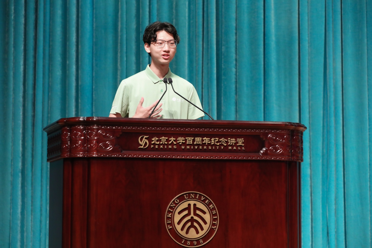 2025级阿拉伯语系本科生郭圣杰首先抒发了对开启外院新生活的欣喜与期待。他回忆起入学短短几天以来体会到的幸福与温暖,分享了自己选择外院的初心,以及对北大人担当的理解。展望未来,他期待与新同学们一道,勤学好问,脚踏实地,为践行“世界在我脚下,祖国在我心中”的誓言贡献青春力量。
