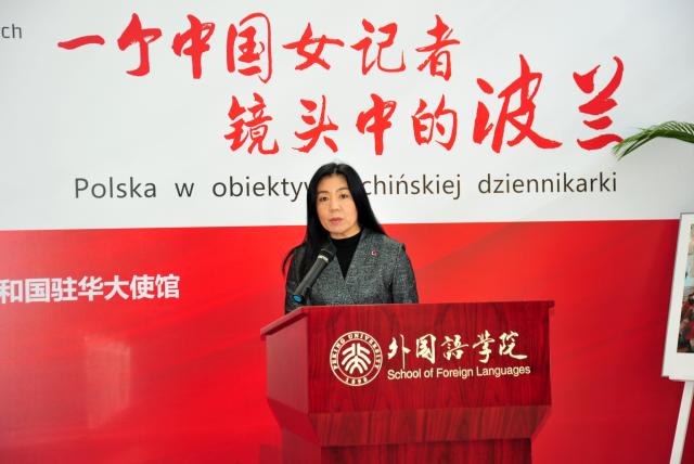 北京大学党委常委、宣传部部长蒋朗朗先生致开幕词。蒋朗朗先生对本次摄影展的召开表示了衷心的祝贺,在致辞中,他回顾了中欧两国70年来的友好情谊,并表示希望以此次摄影展为契机增进青年一代对波兰文化的了解,同时加强外国语学院与波兰学者、研究机构之间的联系,为中波友好关系添砖加瓦,建言献策。