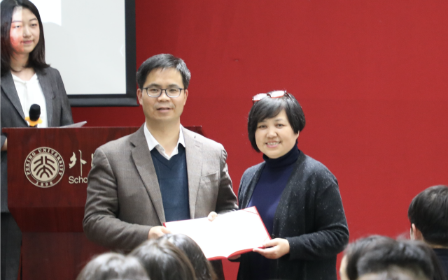 活动开始前,院党委书记李淑静老师为主讲人杨虎老师颁发外国语学院团校“理论导师”聘书,感谢杨虎老师对外国语学院学生党建和团学工作的大力支持。
