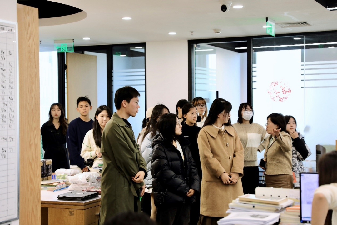 随后,蒲蒲兰的工作人员热情地邀请同学们走进办公区域参观,了解市场、出版、经营等部门的工作内容,并亲自带领大家浏览各式各样的绘本。在这个过程中,同学们得以近距离地感受蒲蒲兰独特的工作氛围,从色彩斑斓、充满想象力的绘本出发,探索一个个全新的世界。