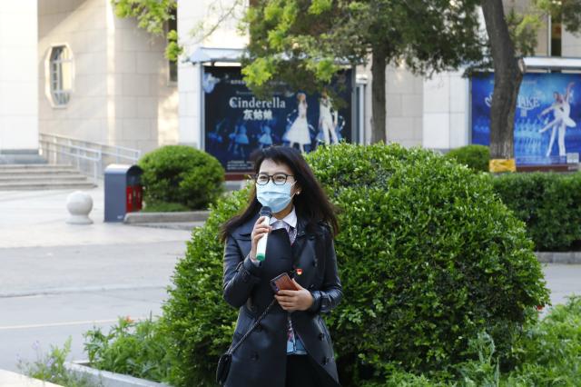 北京大学国庆70周年合唱方阵成员通过远程直播参加活动,艺术学院党委副书记王蓓老师作为方阵指导老师向“唱一代”表达了祝福和期待。王蓓老师深情回顾了与大家共同奋斗的时光,希望大家继承《国歌》中展示出的中华民族不畏艰险、不惧困难的精神,将个人的梦想与国家相结合,发挥青年人的光和热。