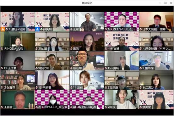 本届“永旺杯”采用线上会议的比赛模式,邀请校内外的日语专家们出席并担任嘉宾及评委。日本国驻华大使馆公关文化中心二等秘书樱井真一、公益财团法人永旺1%俱乐部事务局次长石川忠彦、永旺商业有限公司总经理入野田润、北京大学教育基金会项目管理部部长禹洁、新利·体育,新利(中国)官方日本语言文化系副教授王京、助理教授岳远坤、王灿娟出席本次比赛。