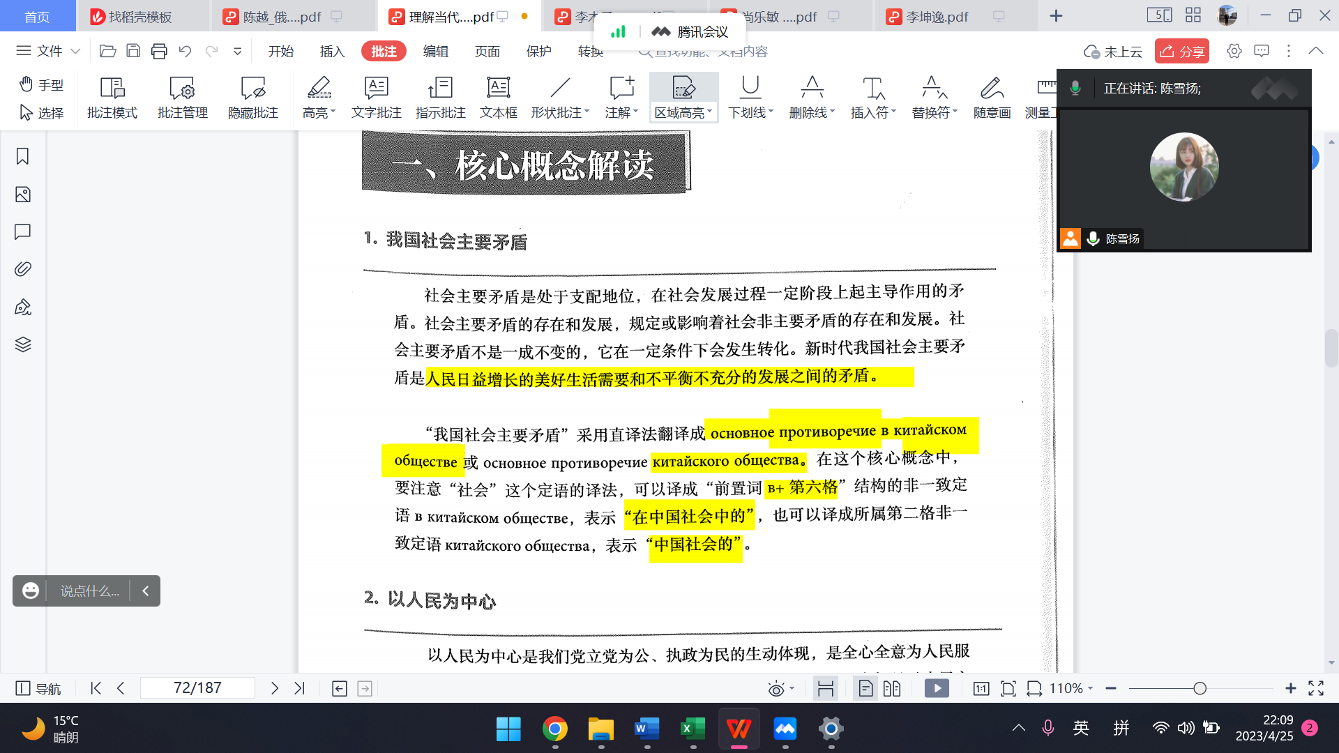 4月26日、5月24日,泰语班的两次读书会均由2022级硕士生王与肖领读,分别学习了二十大报告泰文版和2023年《政府工作报告》泰文版。她首先朗读了学习材料的重要部分,并进行了生词讲解,之后带领同学们观看了介绍马克思和《共产党宣言》的泰文视频,最后邀请同学们轮流发言,每人介绍一个热点词汇,并围绕阅读内容发表心得体会,加深了同学们对新时代背景下政府面临的现实问题及其解决方略的认识和理解。