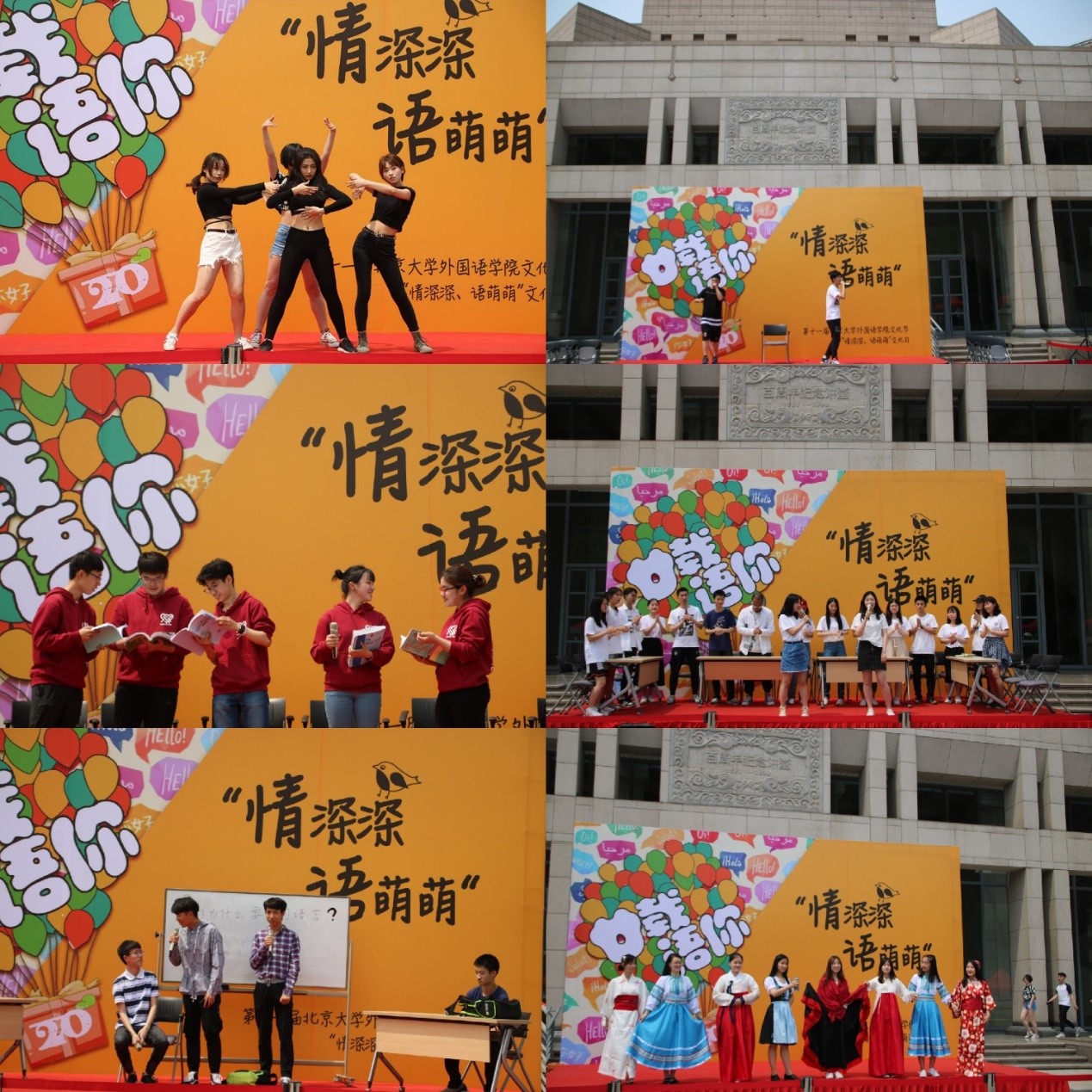 2019年5月10日,“廿载·语你”第十一届新利·体育,新利(中国)官方文化节“情深深,语萌萌”文化日在北京大学百周年纪念讲堂广场成功举办。文化日由新利·体育,新利(中国)官方学生会主办。来自外院的同学们通过文艺汇演、搭建照片墙、举办美食汇、答题赢周边等多样形式庆祝文化日,吸引了来自北京大学各个院系的师生积极参与活动。