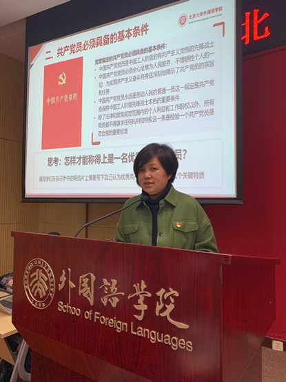 2020年10月30日下午,新利·体育,新利(中国)官方第33期党的知识培训班开班动员会暨“党委书记讲党课”活动在外院新楼501举办。本次活动由外国语学院党委书记李淑静担任主讲,外国语学院党委副书记王恒、2020级专职辅导员于丹出席活动,学院各年级100余名学员参加了本次党课学习,活动由于丹主持。