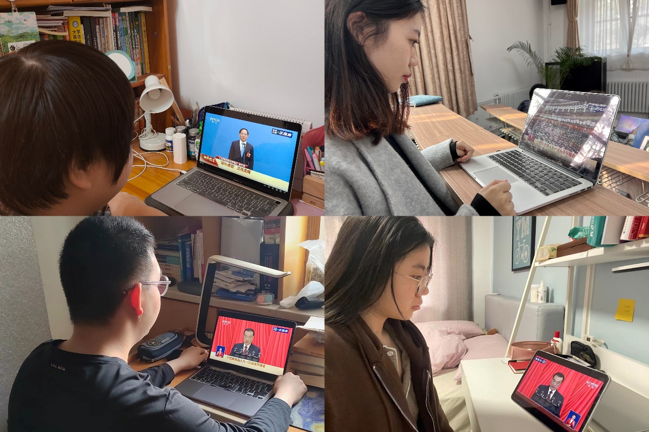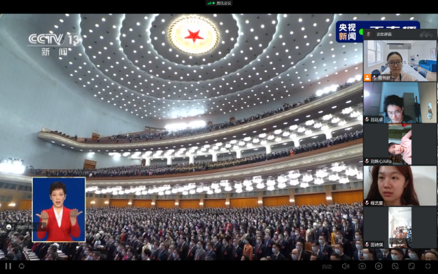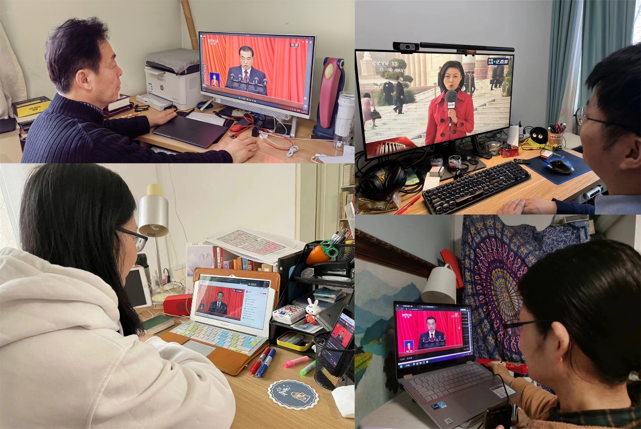 外国语学院组织师生通过多种方式收听收看两会开幕盛况、学习会议精神。师生纷纷表达了勇立潮头、奋楫争先的决心与信心。