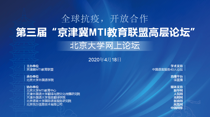 4月18日,在外院新楼举办以“全面凝聚抗疫合力,加强京津冀语言服务合作”为主题的“第三届京津冀MTI教育联盟高层论坛”北京大学网上论坛。论坛由京津冀MTI教育联盟主办,新利·体育,新利(中国)官方承办,中国语言服务40人论坛提供学术支持,新华网、人民网、光明网、新浪网、凤凰网、中国网等提供媒体支持,论坛译直播平台同步直播,14442人收看同步直播。外院技术服务团队全程提供技术支持和协助,全力保障论坛的顺利进行。