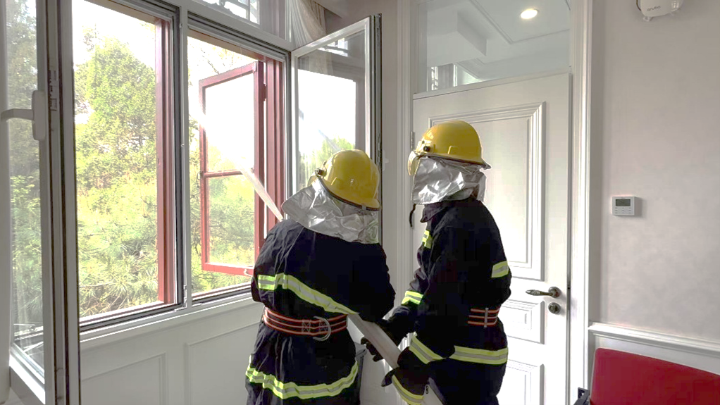 上午9时51分演练开始,此次演练以外文楼206会议室突发火情为背景,远程值班的中控室值守人员通过主机显示屏确定报警位置后,迅速通知到外文楼值班员,外文楼值班员迅速携带应急包到现场确认火情,当发现火情无法控制时,通知值守人员请求支援。值守人员接到报讯后迅速启动应急预案,打开楼内应急广播通知疏散,微型消防站人员即刻启动消防栓灭火。每一层的疏散负责人立刻到位,冷静有序地组织楼内人员进行疏散,引导师生按照预定疏散路线,用湿毛巾捂住口鼻迅速撤离至集合地点。消防志愿队配合完成火源初期扑救,整个过程在3分钟内有序完成,充分检验了应急预案的实操性。