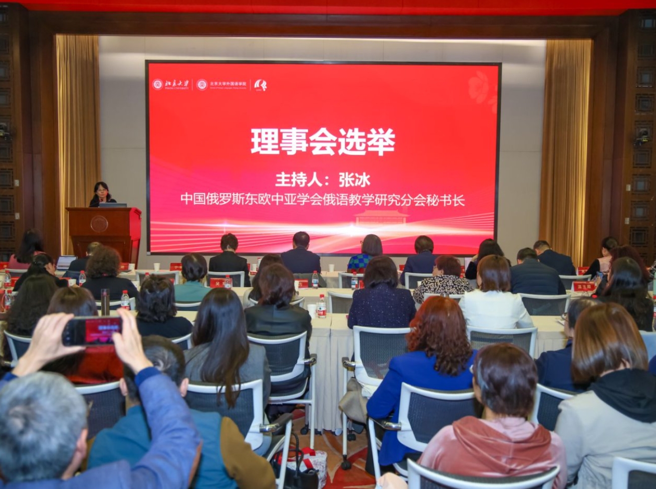 会议期间还举行了中国俄罗斯东欧中亚学会俄语教学研究分会会员代表大会,宁琦会长向大会作任期工作报告,随后进行了新一届俄语教学分会理事会选举,宁琦教授、张冰教授分别连任会长和秘书长。