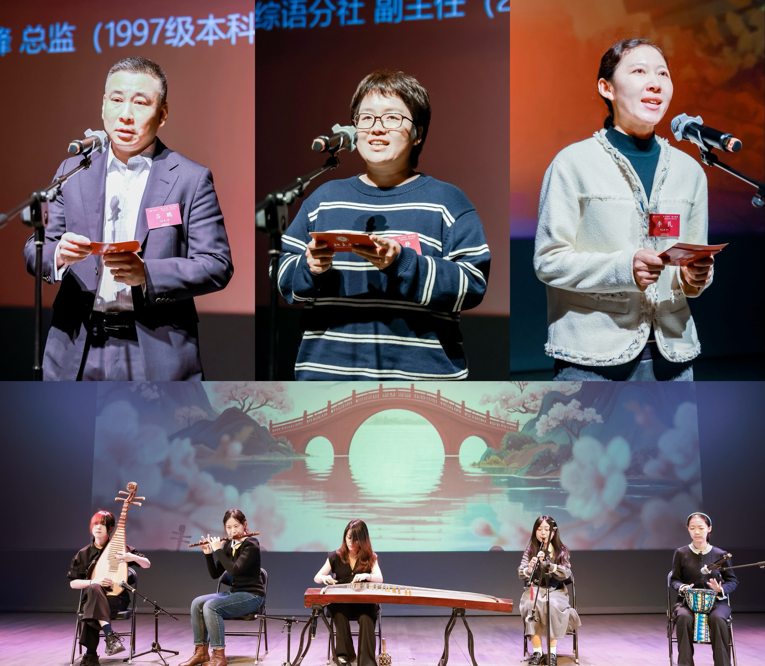 三位系友对专业的怀念与感激之语在悠扬的旋律中落下帷幕,08级本科系友赵宇彤与24级、25级在校生崔曦文、祁豫、王静怡、高睿卿共同带来的器乐合奏《阿里郎》回荡在会场的每个角落。宛若天成的合奏勾勒出师生们心中一段又一段熟悉的曲调,诠释着朝鲜语专业学子独有的默契与风采。