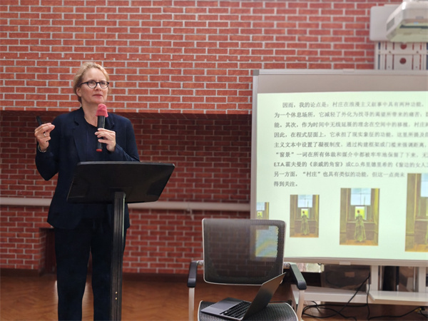 11月8日上午,第二场“乡间浪漫:布伦塔诺与浪漫主义乡村叙事”在民主楼301室举行,施托金格教授主讲,德语系谷裕教授主持。施托金格教授指出,浪漫主义叙事中的乡村具有双重功能:一是延宕叙事,二是象征现实的功能。他以布伦塔诺所著短篇小说《小卡斯帕和小安娜》( Geschichte vom braven Kasperl und dem schönen Annerl )为例,阐述了布伦塔诺所构想的乡土社会伦理根基。小说所暗示与预召的民俗性与现代性在浪漫主义乡村叙事中的和解,启发了奥尔巴赫在《黑森林乡村故事》( Schwarzwälder Dorfgeschichten )中继续探索“乡村故事”这一文学体裁。在讲座后的讨论中,听众还就布伦塔诺著作中审美追求与信仰要求之间的持续张力、小说中的现代与现代性、浪漫主义的民族性等角度与施托金格教授交流探讨。
