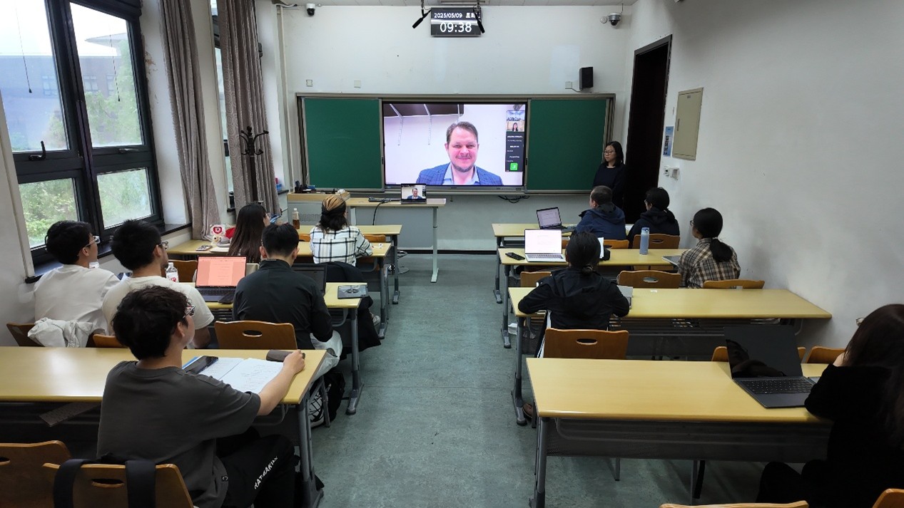 沈一鸣老师首先简要介绍了博伊斯顿博士的学术背景与研究方向,并对他的到来表示热烈欢迎。博伊斯顿博士随后对北京大学的邀请表达了诚挚感谢,并介绍本次讲座将围绕三个部分展开:背景介绍、文本导读以及问答交流。