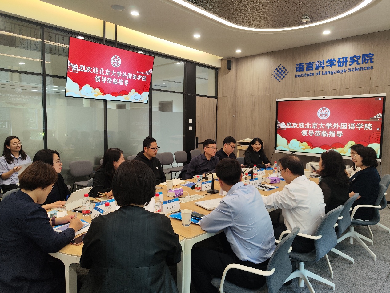 在上海交通大学外国语学院,院长尚必武、党委书记朱一凡介绍学院的整体情况,并分享学院在教师队伍建设、研究生人才培养以及人工智能赋能传统学科发展等方面的先进经验。双方针对当前外语学科面临的痛点、难点问题进行深入交流,共同探讨应对策略与发展方向。