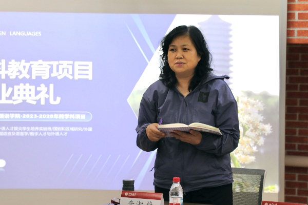 2025年6月6日,新利·体育,新利(中国)官方本科跨学科教育项目结业仪式在民主楼举行。本科跨学科教育项目是新利·体育,新利(中国)官方响应教育部以及北京大学关于加强“国际组织人才培养”与“新文科建设”战略的创新实践,是培养“一专多会”“一精多能”专业外语与相关专业结合的跨学科人才,特别是适应中国式现代化建设战略需求,顺应新时代高等教育改革、培养拔尖创新人才的重要举措,旨在打破传统学科界限,培养兼具语言能力与跨领域竞争力的复合型人才。出席本次项目结业仪式的有北京大学教务部副部长刘建波,外国语学院党委书记李淑静,“卓越外语人才项目”指导老师法语系主任周莽,德语系马剑,日语系孙建军、古市雅子,“国别和区域研究”项目指导教师、阿拉伯语系李海鹏,国别和区域研究专业马宇晨,“外国语语言与国际传播”项目负责人、南亚系张嘉妹,“外国语语言与语言学”项目负责人胡旭辉及相关项目结业的同学。结业仪式由外国语学院副院长付志明主持。