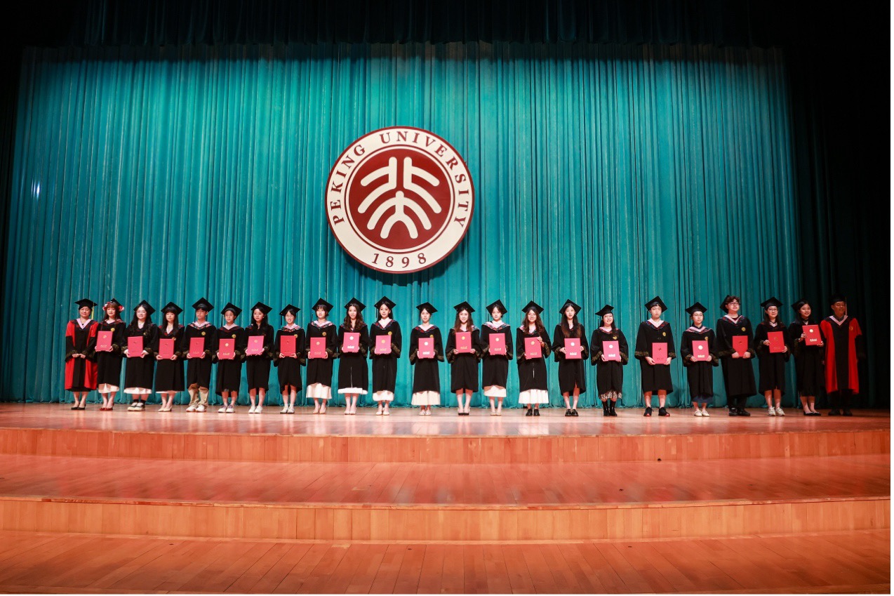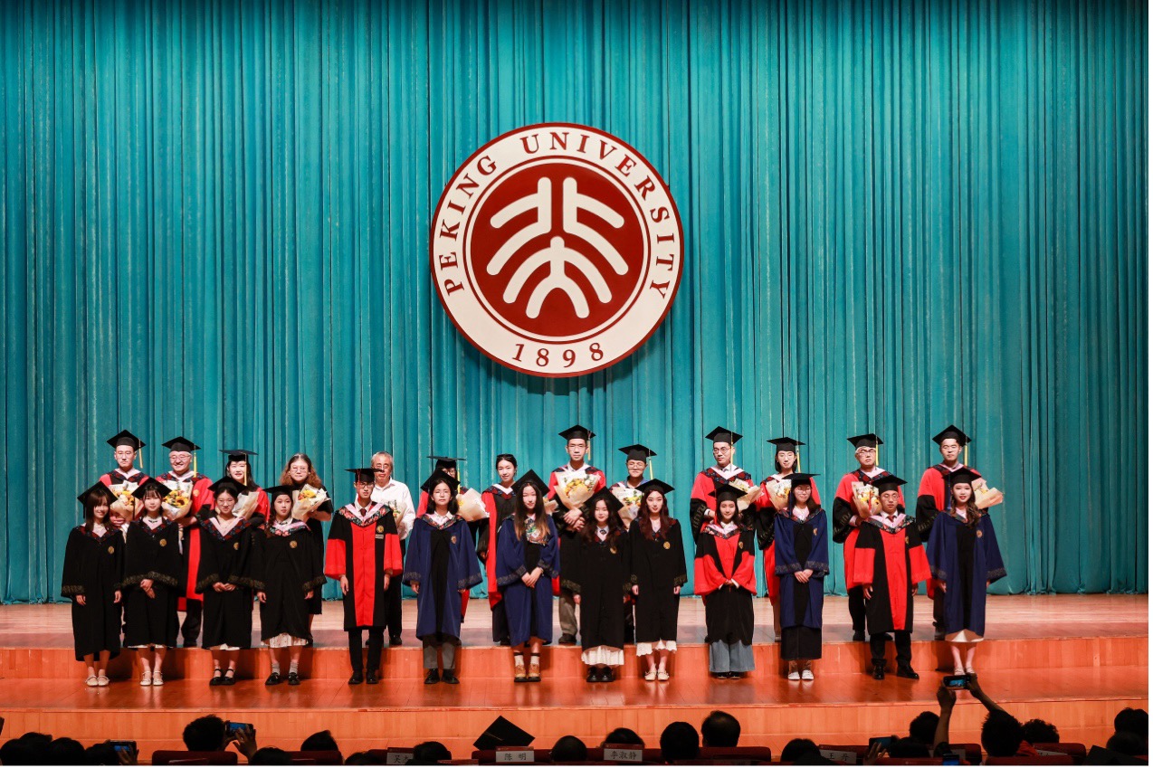 院党委书记李淑静宣读了《关于表彰2025届优秀毕业生的决定》,并与院长陈明、副院长付志明、王丹共同为优秀毕业生颁发荣誉证书,勉励获奖学生和全体毕业生传承北大人、外院人的优良传统,砥砺前行,不负使命,不负党和人民的殷切希望。