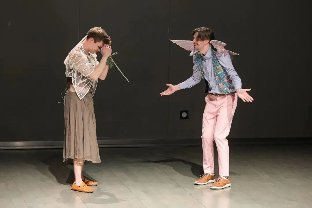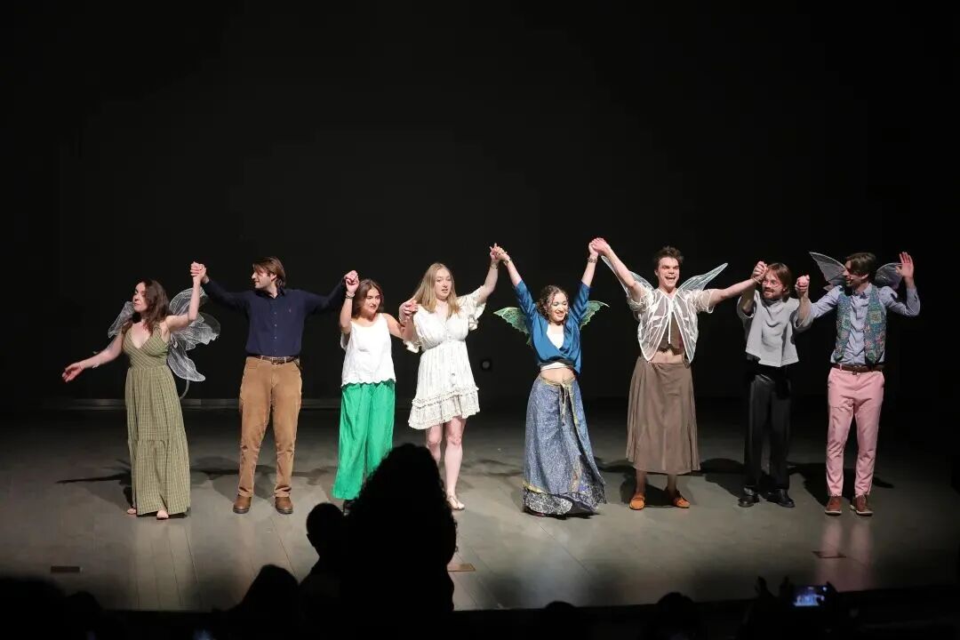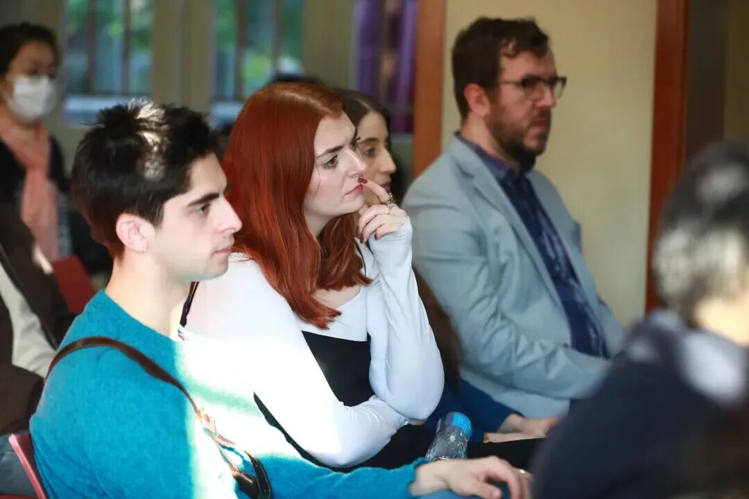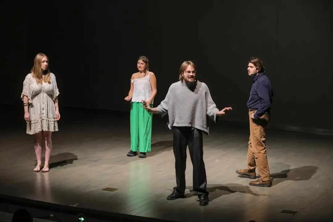 研讨会上,来自莎士比亚故乡的剧组演员代表Liberty Myers也做了简短发言,他代表同学们感谢北大燕京学堂和外国语学院的邀请,分享了剧组在排演《牡丹亭》过程中的感受和演出经验。三位燕京学堂的同学——导演Luca Bustani Wood、主演Isabella Concetta Gualano与艺术总监Kristina Ming-xue Gilje Chiu,代表《仲夏夜之梦》剧组发言。他们向那些在幕后默默付出、未能亲临现场的伙伴们表达了感谢,从剧本打磨、舞台搭建到服装道具筹备,每一份支持都化作了演出顺利呈现的保障。值得一提的是,参与本次演出的同学们并无一人是专业演员,也从未接受过系统的戏剧表演培训。但对莎士比亚经典的热爱与对舞台的憧憬,让他们跨越了专业的界限:从最初对台词节奏的生涩拿捏,到肢体表达的反复磨合,再到对角色情感的深度揣摩,大家利用课余时间全心投入、相互鼓劲,用纯粹的热情与不懈的坚持,将这部奇幻喜剧的魅力淋漓尽致地展现了出来。这份“非专业”的坚守,更让这场演出多了一份纯粹的动人力量。(以上引文出自燕京学堂有关报道,谨此致谢)。两个剧组同学们讨论热烈,他们对戏剧艺术的热爱和探索精神都受到了与会者的一致赞扬。