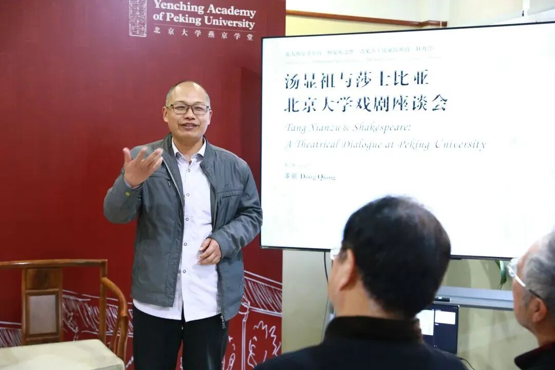 燕京学堂董强院长主持了会议,他在充满古典诗意的致辞中指出,汤显祖和莎士比亚代表着16世纪至17世纪东西方戏剧的最高峰,他们的剧作是世界文学的伟大杰作。“莎翁故乡--英国埃文河畔的斯特拉特福,因莎翁闻名世界,成为文学爱好者的朝圣之地;地名“Stratford-upon-Avon”中“upon”的用法,既凸显镇与河的关联,又具诗意,让人联想青年莎翁临河观天,未像纳西索斯沉迷自我,反倒因水中的蓝天探索浩瀚的人心、社会与历史。同理,成长于抚河畔的汤显祖,其故乡临川即意为邻河、临河。他见河水流动,联想到孔子“逝者如斯”的感叹,思考人在天地自然规律中如何留痕,进而发现人类的“梦”与“至情”。时光流逝亦积累人类精神财富,莎翁与汤显祖便是其中重要代表。董强院长表示,燕京学堂坚守文化信念,既为中外文明互鉴搭建桥梁,也通过推动学生深度交流,助其明晰文明传承与创新的责任。此次同学们虽身负实习、学业压力,仍主动挤时间参与《仲夏夜之梦》表演,尽显对跨文化交流的热忱。黄必康教授倾注心血翻译《牡丹亭》,在今天由英国的教授与同学们演绎出来,让东方古典的雅致与西方舞台的灵动碰撞出奇妙的火花,成为中外师生以艺术为媒、共探文明内核的生动实践。这不仅让《牡丹亭》的昆曲意蕴跨越山海、直抵人心,更印证了优秀文化的共通性,为青年一代深化跨文化理解、践行文明传承创新使命注入了鲜活力量。”