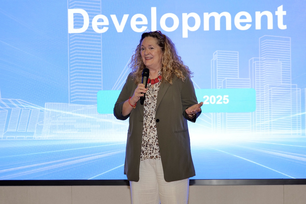 决赛分为定题演讲和问答环节,大学英语教研室11位教师担任比赛评委,外籍教师Maija-Liisa Adams和Kae Sawyer出任提问专家。参赛选手不仅以流利的英语和自信的姿态,更通过一个个生动的故事,为观众描绘出中国高质量发展的宏伟蓝图,深刻诠释了青年一代在新时代的使命与担当。在问答环节中,面对外籍专家的即兴提问,选手们反应敏捷,思路开阔,展现了新时代青年走向世界的自信与担当,赢得了全场评委与观众的热烈掌声和一致好评。