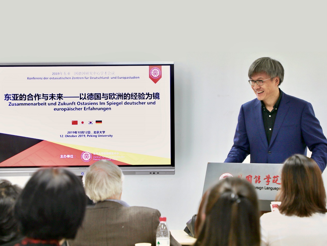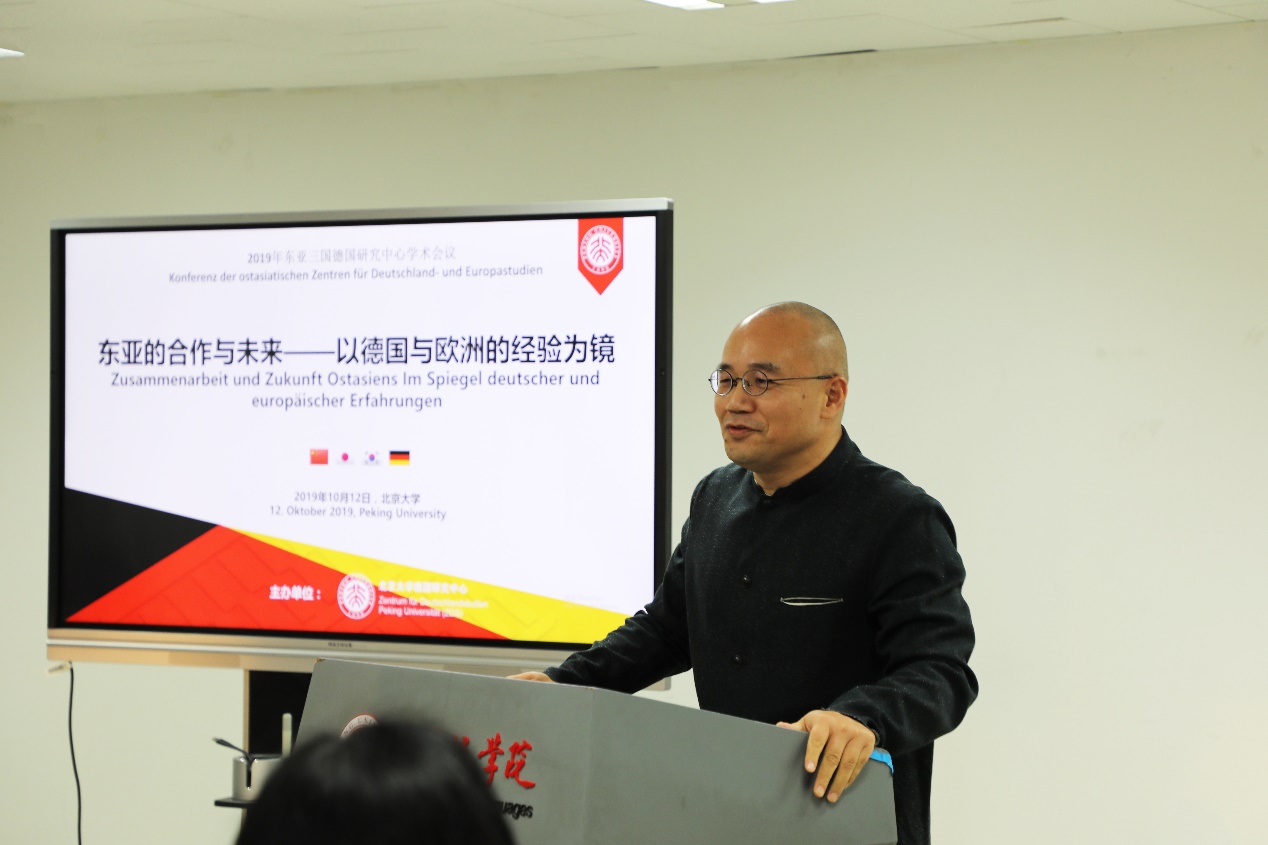 10月12日至13日,由北京大学德国研究中心(ZDS)主办的中日韩三国德国研究中心学术会议在外国语学院新楼301会议室举行。本次会议的主题为“东亚的合作与未来——以德国与欧洲的经验为镜”。北京大学副校长王博教授出席闭幕式并致辞。来自中国、日本、韩国、德国、瑞士、奥地利、捷克、白俄罗斯等国的40余位学者齐聚一堂,从政治、经济、文化、历史、艺术等不同学科视角,反思东亚与欧洲的历史经验,共商一体化实践的方向与愿景。日本东京大学德国与欧洲研究中心(DESK)、韩国中央大学德国与欧洲研究中心(ZeDES)作为北大德国研究中心的合作伙伴,分别派出代表团参会。