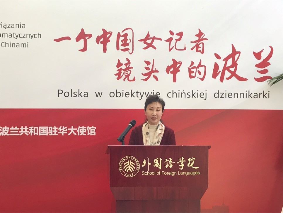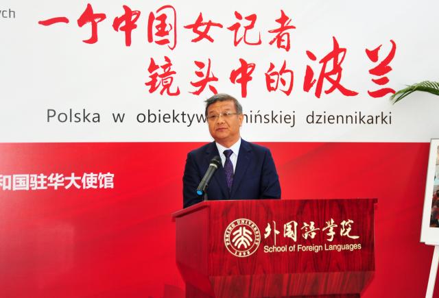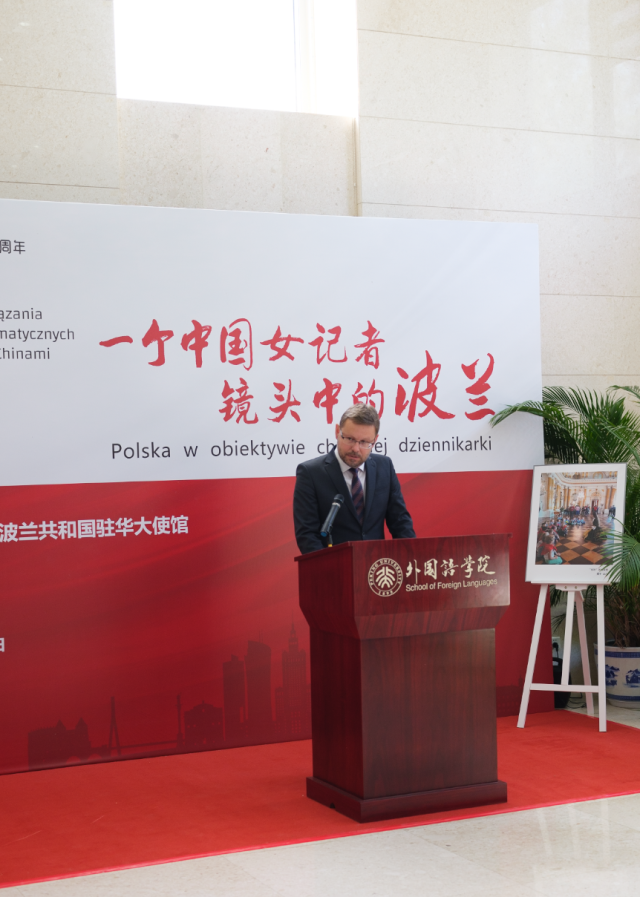 北京大学党委常委、宣传部部长蒋朗朗先生致开幕词。蒋朗朗先生对本次摄影展的召开表示了衷心的祝贺,在致辞中,他回顾了中欧两国70年来的友好情谊,并表示希望以此次摄影展为契机增进青年一代对波兰文化的了解,同时加强外国语学院与波兰学者、研究机构之间的联系,为中波友好关系添砖加瓦,建言献策。