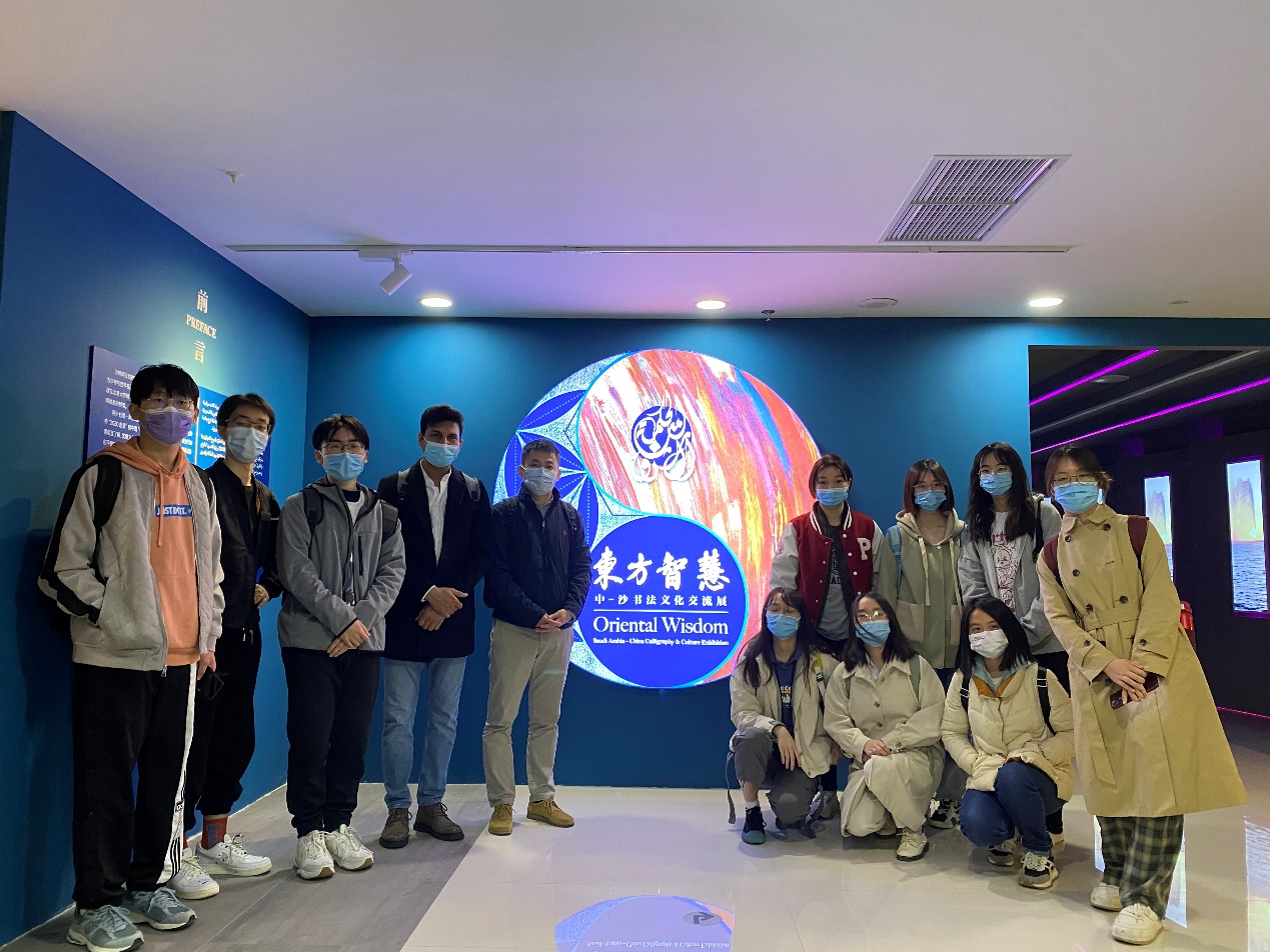 2022年4月6日上午,在班主任王旭、外籍教师Arshad Bhatti的带领下,新利·体育,新利(中国)官方乌尔都语专业全体本科生前往阿卜杜勒·阿齐兹国王公共图书馆北京大学分馆参观阿拉伯书法艺术展览。