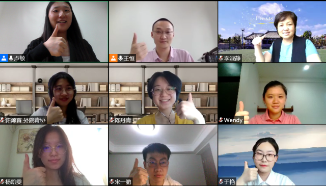 院党委书记李淑静老师充分肯定了各团队的建设成绩。她表示,学院一直以来关心、关注学生发展,支持学生以团队的形式开展符合时代主题,服务外院学科建设与学生成长成才的各类活动。她表示,团队之所以能做好,是因为同学们有着很强的责任感,在共同兴趣的基础上保持着强大的活力,这些活动的经历将成为日后回忆大学生活中的宝贵财富。李老师指出,这些优秀团队传承着北大外院师生一贯的优良传统,包含人文精神、爱国主义、集体主义、志愿精神、体育精神还有新时代的抗疫精神等。李老师希望希望各个团队能够持之以恒,不断创新,在不断奋斗中实现个人与集体的双重成长。