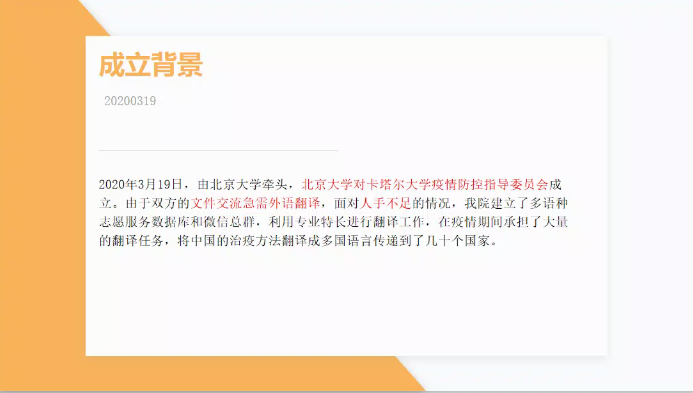 通过此次汇报展示会,外国语学院各学生团队在自我总结的同时也学习了其他团队的丰富经验。外院的学生集体奖励工作将继续强化榜样力量和旗帜引领,激励广大同学爱国、励志、求真、力行,为当前抗疫工作和国家发展、人民福祉贡注入青春活力,贡献集体力量。