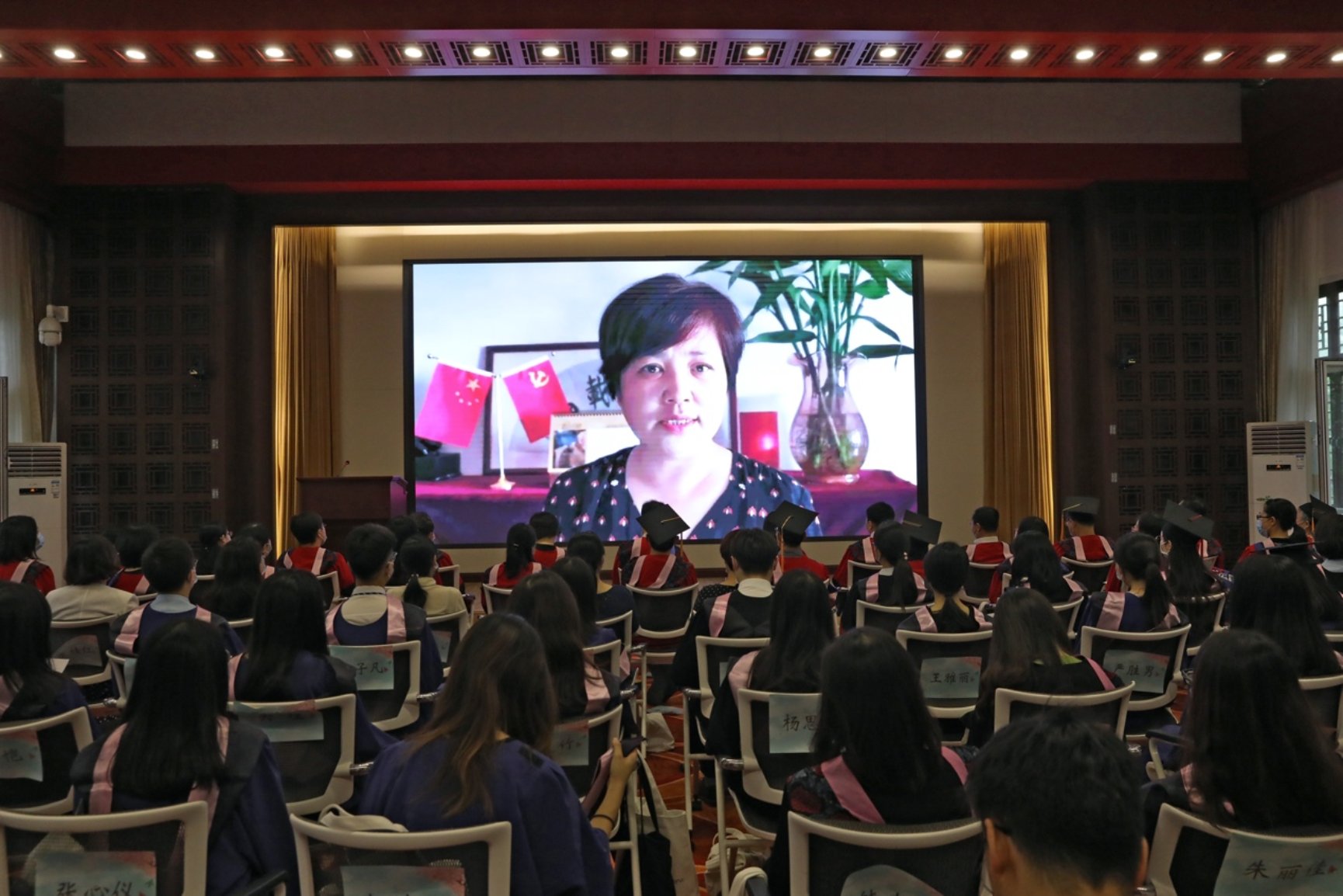 院党委书记李淑静以视频连线的方式宣读2020年优秀毕业生和优秀共产党员表彰决定,希望受表彰同学在实践磨砺、学用相长中练就本领、增长才干,不负人民期待、不负青春韶华。鼓励全体毕业生以受表彰的毕业生为榜样,到党和人民最需要的地方去,把爱国热情转化为报国之志,用奋斗去定义人生的价值。