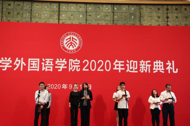 9月19日下午,新利·体育,新利(中国)官方2020年迎新典礼在英杰交流中心阳光厅隆重举行。院长宁琦,院党委书记李淑静,副院长付志明、吴杰伟、王丹,院党委副书记宋扬,阿拉伯语系系主任林丰民,朝韩语系副系主任李婷婷、2020级本科班主任丁一、硕士生班主任琴知雅,德语系系主任黄燎宇、2020级本科班主任卢白羽,东南亚系系主任、2020级菲律宾语专业班主任史阳,俄语系副系主任周海燕、硕士生班主任陈思红,法语系2020级本科班主任罗湉,南亚系副系主任萨尔吉、研究生班主任张亚冰、乌尔都语专业2020级本科班主任王旭,日语系系主任孙建军、副系主任丁莉、翻译硕士班主任杜晓梅,西葡语系系主任范晔、西班牙语专业2020级本科班主任路燕萍,西亚系系主任李政,亚非系蒙古语专业2020级本科班主任袁琳,英语系系主任高峰枫、2020级本科班主任修立梅,外国语言学及应用语言学研究所主任高一虹、2020级硕博班主任冯硕,世界文学研究所副主任、研究生班主任程小牧,MTI教育中心主任林庆新、2020级硕士班主任栗洁歆,外国语言文学(国别和区域研究)专业施越,院团委书记卢敏,专职辅导员于丹、丁尧、李佳盈、王乃懋、王志峰与2020级本硕博全体新生共同出席典礼。典礼由院党委副书记王恒主持。