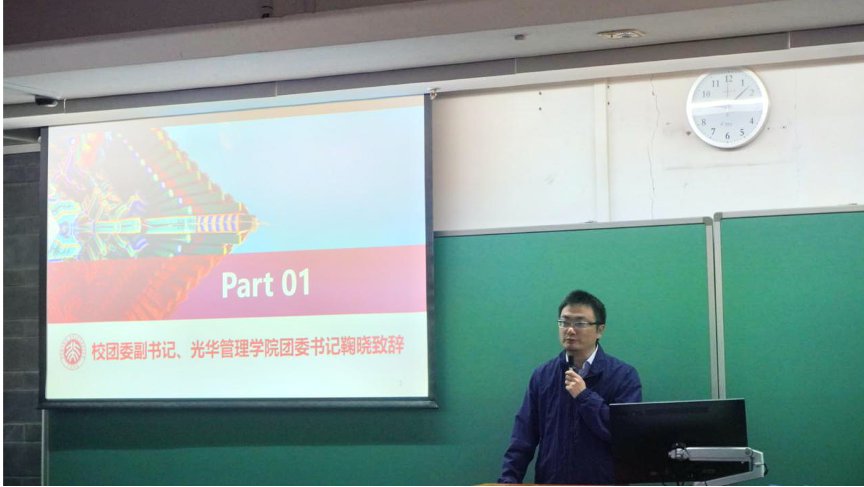 鞠晓代表校团委对外国语学院2020年思政实践课程的圆满完成表示祝贺,并预祝外院新学年思政实践课程的开展一切顺利。他介绍了今年北大思政实践课程的开展情况,对外院思政实践工作表示支持与肯定,并分享了他在今年思政实践中观察到的外院学子的优秀特质:一是很强的行动力;二是广阔的视野;三是心向祖国的信念。他希望在座的同学们充分汲取师兄师姐们的经验,积极学习相关理论知识,在接下来的课程学习中,收获知识,收获友谊,收获成长。
