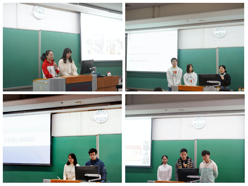 8支优秀思政实践课程团队代表围绕2020年北京大学思政实践课程的五条主线分别进行展示,讲述属于他们的实践故事:重庆“心有所信,方能行远”课程团队聚焦重庆旅游的开发价值与方向设想,对重庆文旅存在的问题进行分析,提出期待与展望;南昌“探访南钞,以史为践” 课程团队概述他们在南钞公司的考察经历及感悟,述说南钞公司在国际化业务中的酸甜苦辣,分享他们学到的人民币知识;西安“薪火相传,创新发展” 课程团队深入探索走访地背后的文化价值,分享九州集团的抗疫故事;西安“不忘初心,继往开来”课程团队围绕教育调研这个主题,介绍了其活动背景、前期策划、工作开展,总结网络教学的经验,给出成果反馈和对未来的思考;余杭“勇立时代潮头,矢志创新发展”课程团队聚焦余杭的文化积淀和科技实力,探索学习科技和文化协调共荣的发展方式,向同学们展示他们的思政实践进程;胶州“置身乡村,敢当重任”课程团队从扶贫、一带一路和抗疫精神三个方面展示调研成果,分享线上线下结合的实践方式,讲述当地的文化概况、扶贫措施和抗疫工作;泉州“访一带一路,寻使命初心”课程团队介绍了他们如何把专业与实践相结合,把学到的知识运用到现实生活中去,在历史中感受文化背后的血脉相亲;山东枣庄“探寻古城新貌,奏响时代强音”课程团队介绍了学习回信精神的主题座谈会和线上参观主题微团课,分享了当地企业在日常运作中的爱国情怀。各思政实践课程团队以专业知识观照社会现实,在基层了解中国,在实践中丰富自己,为日后“讲好中国故事”打下了基础。
