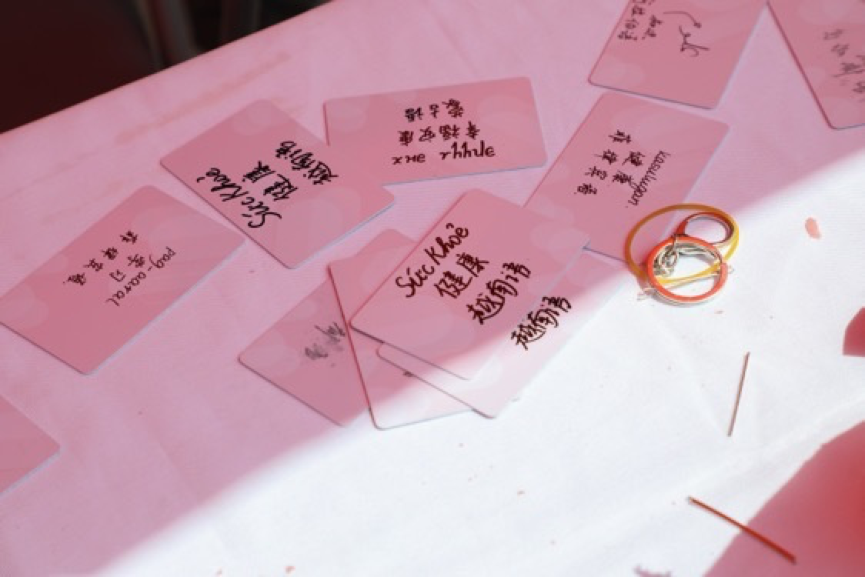 兑奖区域为同学们准备了由外国语学院学生会和新媒体中心精心设计的多种文创产品,包括卡套、多语种祝福卡片、明信片、电脑贴纸、马克杯、帆布袋等。这些文创产品具有鲜明的外院特色,用不同的语言写满对同学们的祝福,展现了丰富多彩的世界文化,同时也传递了满满的爱。