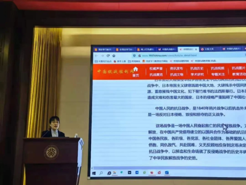 翁家慧副教授开宗明义,指出党史学习需要树立正确的党史观和历史观,避免将党史庸俗化、娱乐化,要准确地认知历史。同时,研究党史需要有第一手文献资料作为支撑,也需要形成对资料的看法与评价。对此,翁老师向同学们推荐了一个内容详实的党史学习教育网站——中国抗战胜利网(http://www.chinavictory.com/views/home/default.html)。
