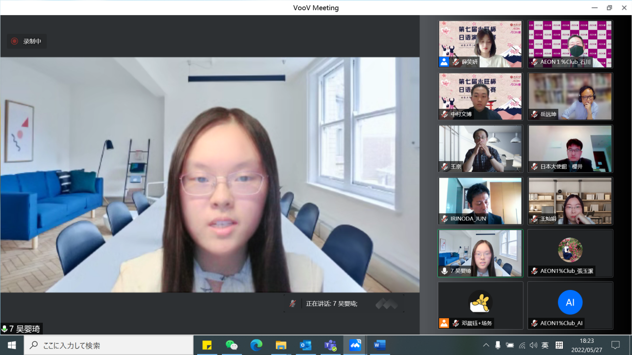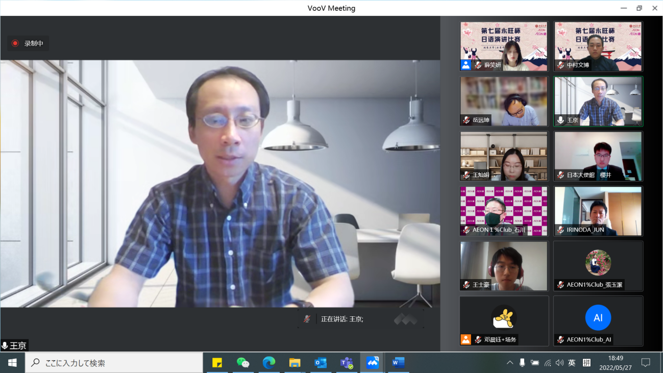 本届“永旺杯”采用线上会议的比赛模式,邀请校内外的日语专家们出席并担任嘉宾及评委。日本国驻华大使馆公关文化中心二等秘书樱井真一、公益财团法人永旺1%俱乐部事务局次长石川忠彦、永旺商业有限公司总经理入野田润、北京大学教育基金会项目管理部部长禹洁、新利·体育,新利(中国)官方日本语言文化系副教授王京、助理教授岳远坤、王灿娟出席本次比赛。
