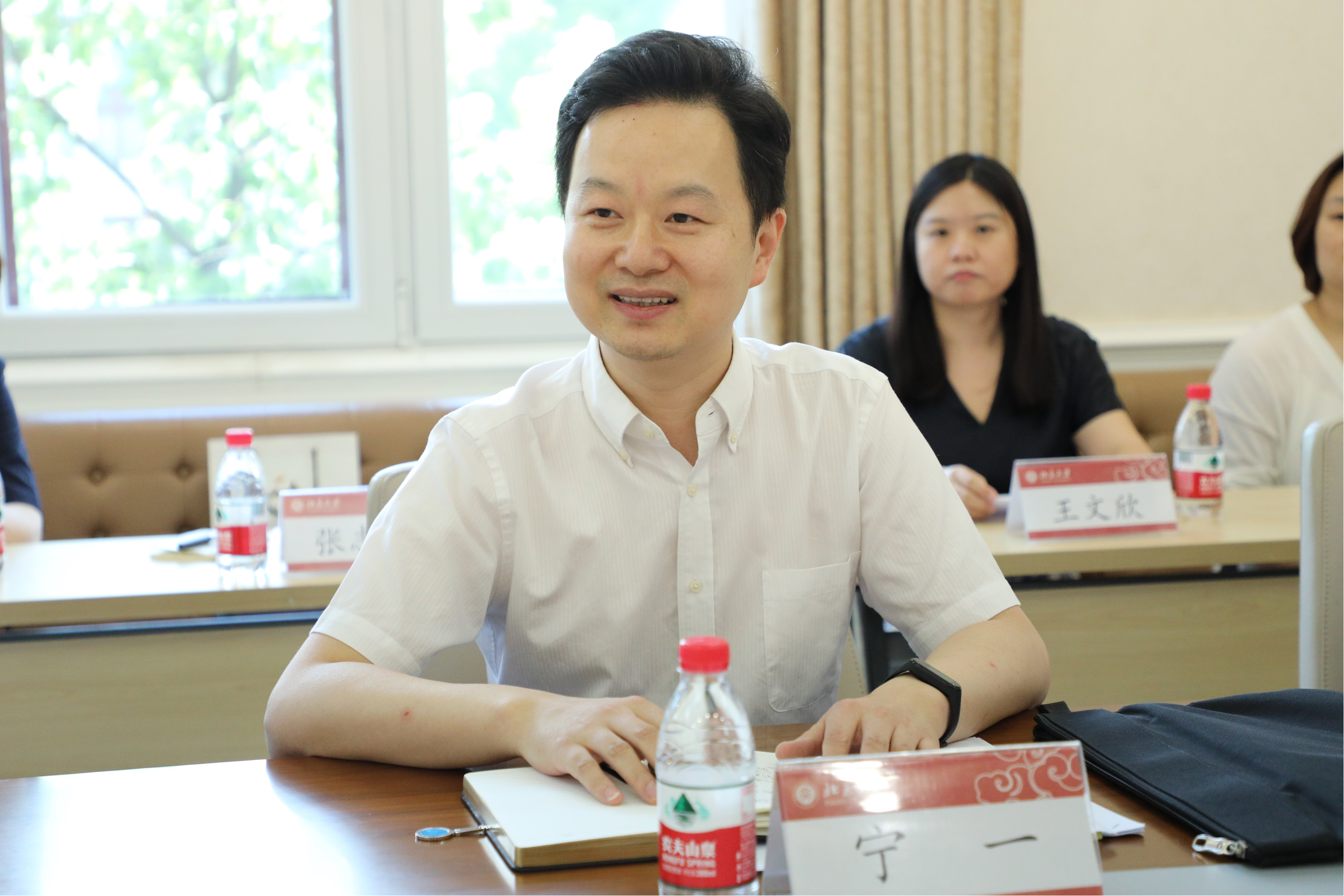 宁一副馆长回顾总结了华侨历史博物馆与外国语学院前期的合作成果。宁一表示,自去年以来,馆院双方已在党建活动、志愿服务、展览策划、藏品研究等方面进行了一系列探索和尝试。2022年10月外国语学院党政领导班子率学院教师赴中国华侨历史博物馆调研。今年5月,外国语学院的志愿者同学们协助馆方开展“华踪医迹——东南亚华侨华人与中医药文化展”英语直播讲解。直播内容在各大平台播出,累计在线观看量达到938400人次。最后,宁一介绍了双方合作的设想,提出可以从思想政治教育和学科建设两方面推进合作,开展协同育人工作。