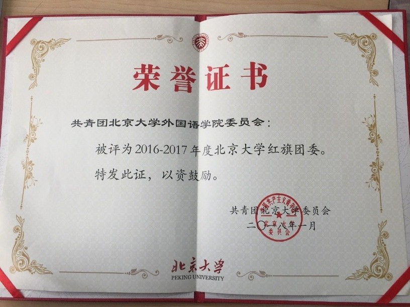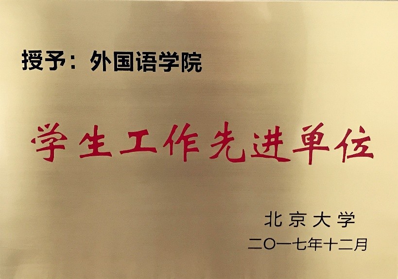 近日,外国语学院被授予北京大学“学生工作先进单位”称号、共青团新利·体育,新利(中国)官方委员会被授予北京大学“红旗团委”称号。